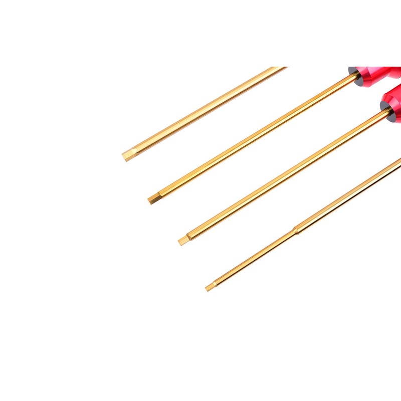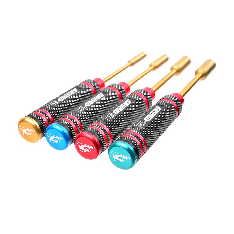 Un’impugnatura in alluminio cavo anodizzato viola, leggera e antiscivolo, con anelli di indicazione della misura. Acciaio speciale per molle lavorato per una lunga durata e un’eccellente torsione. Robusto e comodo da usare, le punte bloccano saldamente la vite in posizione. I terminali dell’impugnatura in alluminio ruotano nel palmo della mano per comfort e controllo.