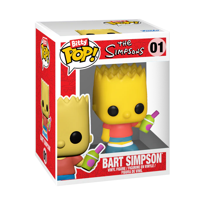I tuoi oggetti da collezione POP! preferiti dei Simpson™ sono stati rimpiccioliti in oggetti da collezione Bitty POP! Amplia la tua collezione con Bitty POP! Town Bart Simpson™ e Kwik-E-Mart! La statuetta Bitty POP! è confezionata in una rigida teca in acrilico con coperchio inferiore staccabile. Il coperchio inferiore staccabile funge anche da base in acrilico, a cui è attaccata la statuetta Bitty POP!. Rimuovi questo esclusivo Bitty POP! Bart Simpson™ dalla sua teca in modo che possa entrare nella Bitty POP! Town Kwik-E-Mart!