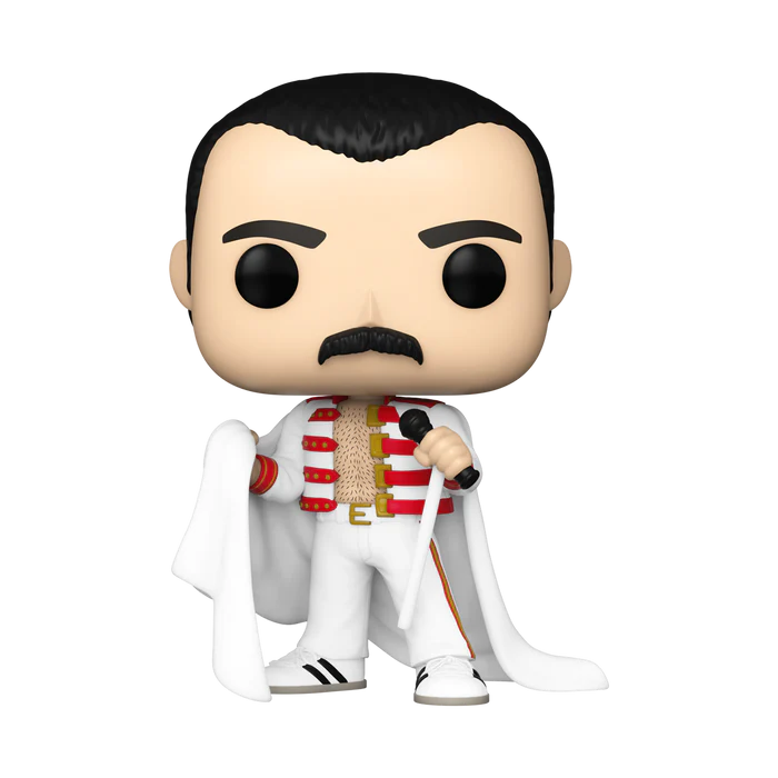 Fai ballare tutti con il cantante dei Queen! Crea un’esperienza musicale indimenticabile accogliendo Pop! Freddy Mercury sul palco della tua collezione con il suo iconico completo con mantello. Con chi collaborerà questo leggendario artista nella tua formazione Pop! Rocks? La statuetta in vinile è alta circa 10 cm.