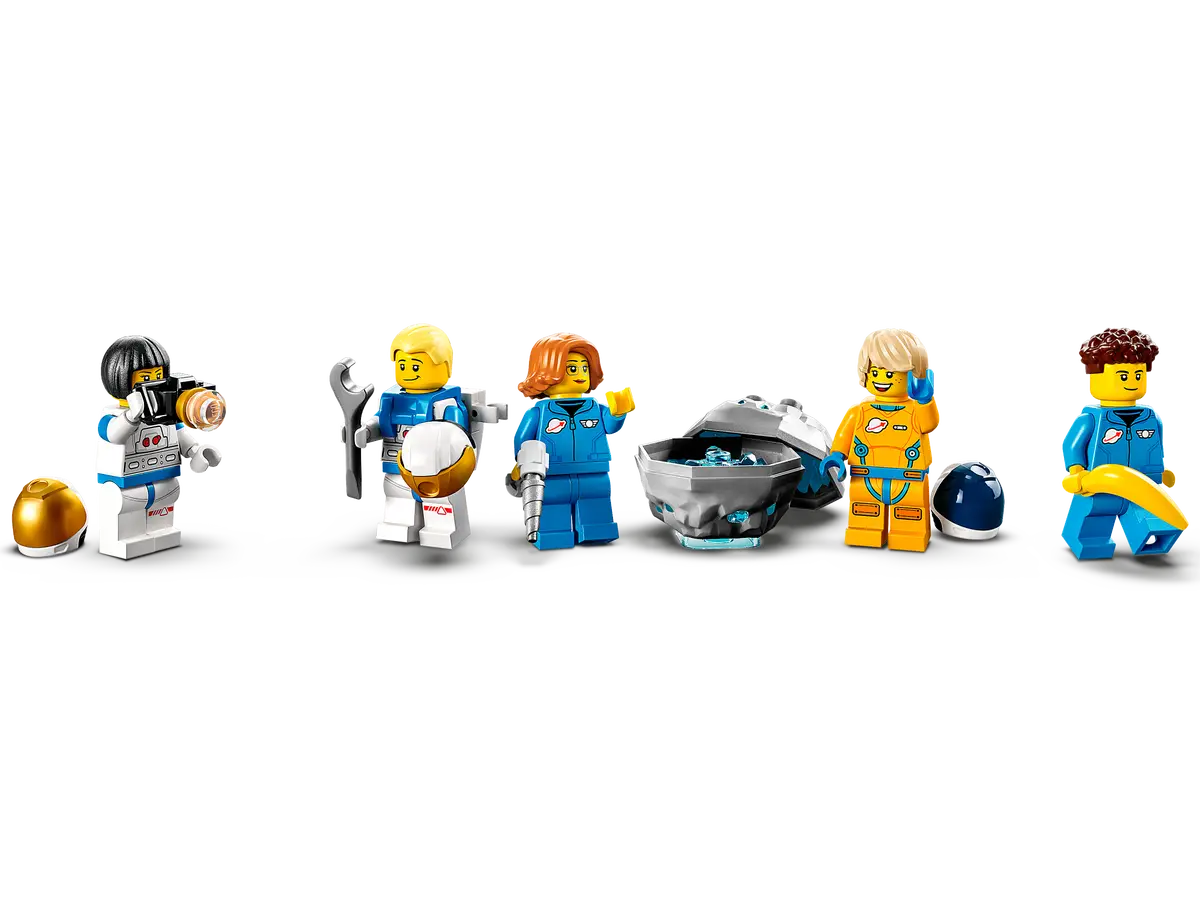 I playset LEGO City Space offrono modelli ricchi di caratteristiche ispirati alle macchine, ai mezzi di trasporto e ai veicoli spaziali della NASA, oltre a personaggi di astronauti che stimolano l’immaginazione e il gioco aperto basato sul missioni spaziali reali.
