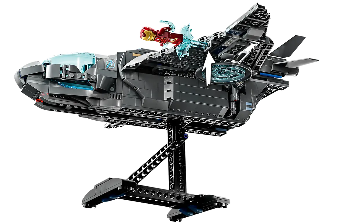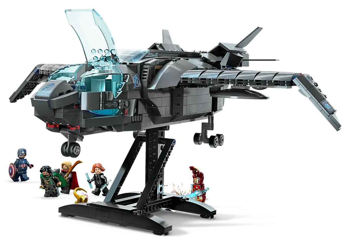 Questa riproduzione dettagliata della celebre astronave Quinjet dei film Marvel Avengers è caratterizzata da un abitacolo apribile, area passeggeri e sezione posteriore, oltre a un carrello retrattile e ali regolabili. Il set è fornito anche con più accessori e 5 minifigure iconiche: Black Widow, Thor con il martello, Iron Man, Captain America con lo scudo e Loki con lo scettro. I bambini possono scegliere di decorare il Quinjet con 2 adesivi diversi con le insegne degli Avengers o dello S.H.I.E.L.D. E quando è a riposo tra un’avventura e l’altra, il Quinjet è un magnifico oggetto da esporre in cameretta sul rispettivo supporto.