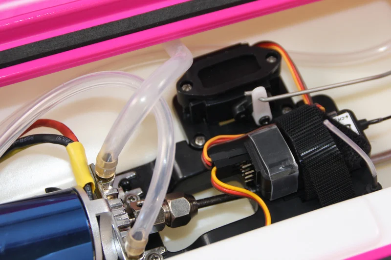 Tutti i componenti elettronici sono installati nello scafo della nave. Nella parte centrale c’è il motore, il regolatore, nella parte posteriore c’è il ricevitore e sul lato destro c’è il servo dello sterzo.
